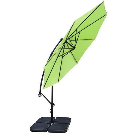 The 10 ft Cantilever Umbrella and 4 Pcs. Fillable Polyresin Heavy Duty Stands from the collection in Lime Green /Black finish is from the Oakland Living's Umbrellas line of patio furniture. This item has a Durable Aluminum, Iron, plastic, and Polyester Material Construction with a Polyester fabric cover. If you are looking for outdoor furniture with great Traditional styling, solid materials, and easy on your budget, Oakland Living is a very good choice.
